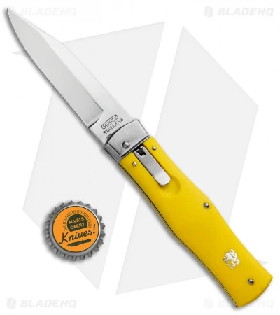 This Mikov model has a yellow ABS handle and a satin finished clip point blade.